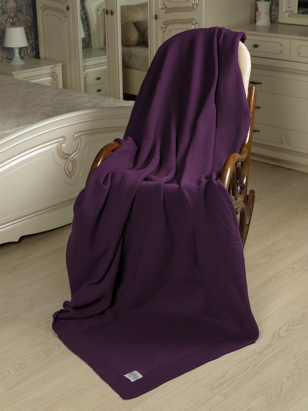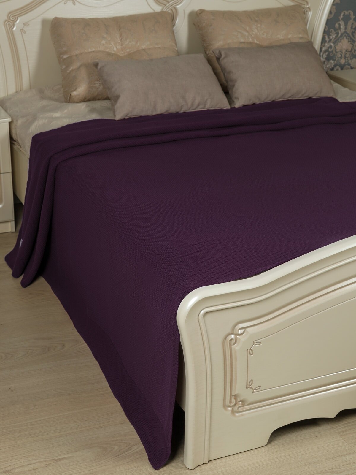 10 цен на Плед вязаный, Warm Whiff, фиолетовый, 180х220, хлопок, покрывало для взрослого, дачи, спальни, кровати, однотонное одеяло, в подарок, мягкий