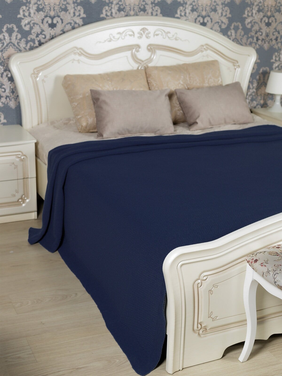 Плед вязаный, Warm Whiff, синий, 180х220, хлопок, покрывало для взрослого, дачи, спальни, кровати, однотонное одеяло, в подарок, мягкий