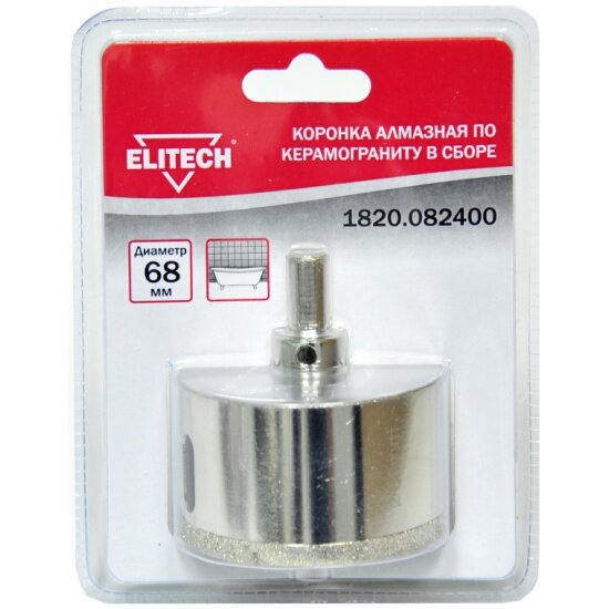 Коронка алмазная ELITECH 68мм, по керамограниту в сборе информация: