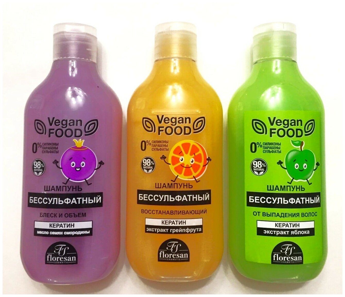 10 цен на Шампунь Vegan FOOD, бессульфатный, натуральный, 300 мл, 3 шт.