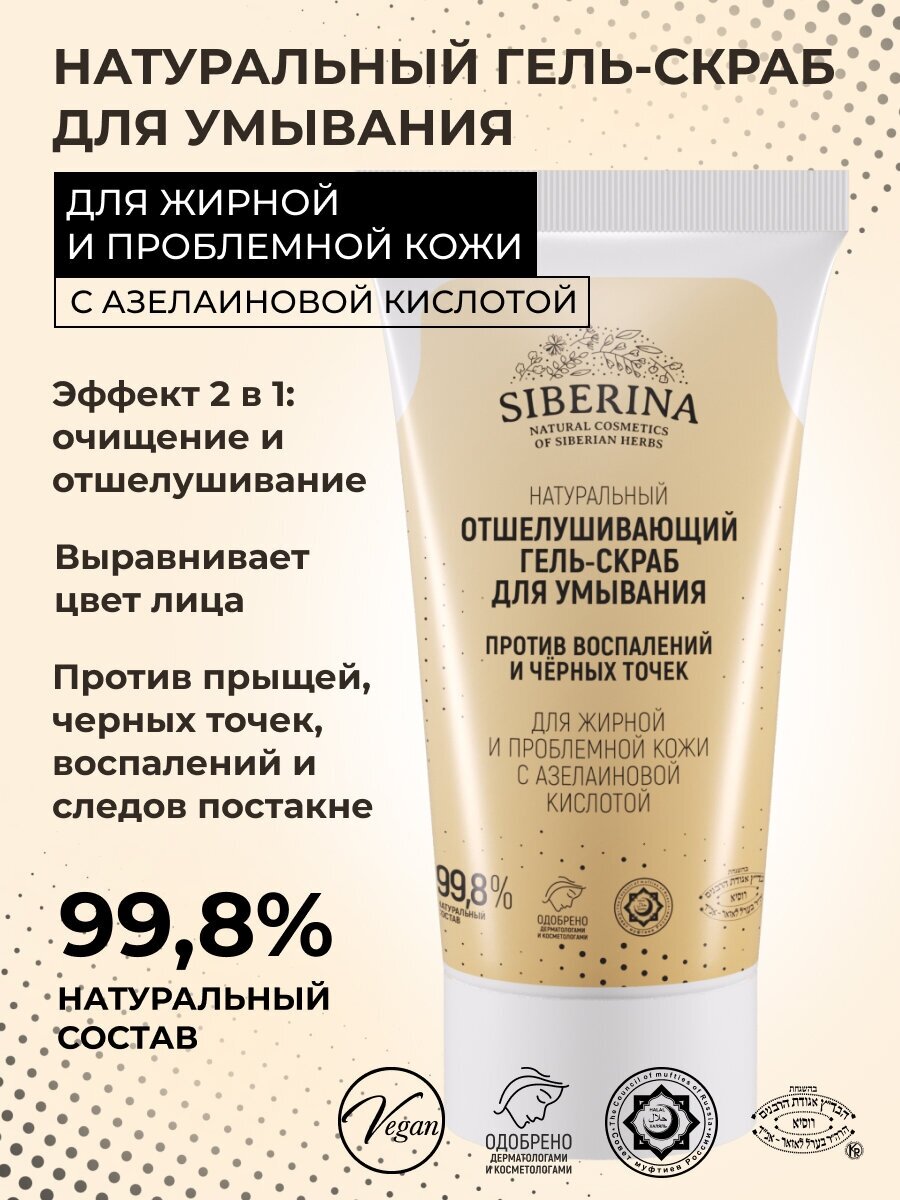 Отшелушивающий гель-скраб для умывания против воспалений и черных точек для жирной и проблемной кожи с азелаиновой кислотой SIBERINA GLL(19)-SIB
