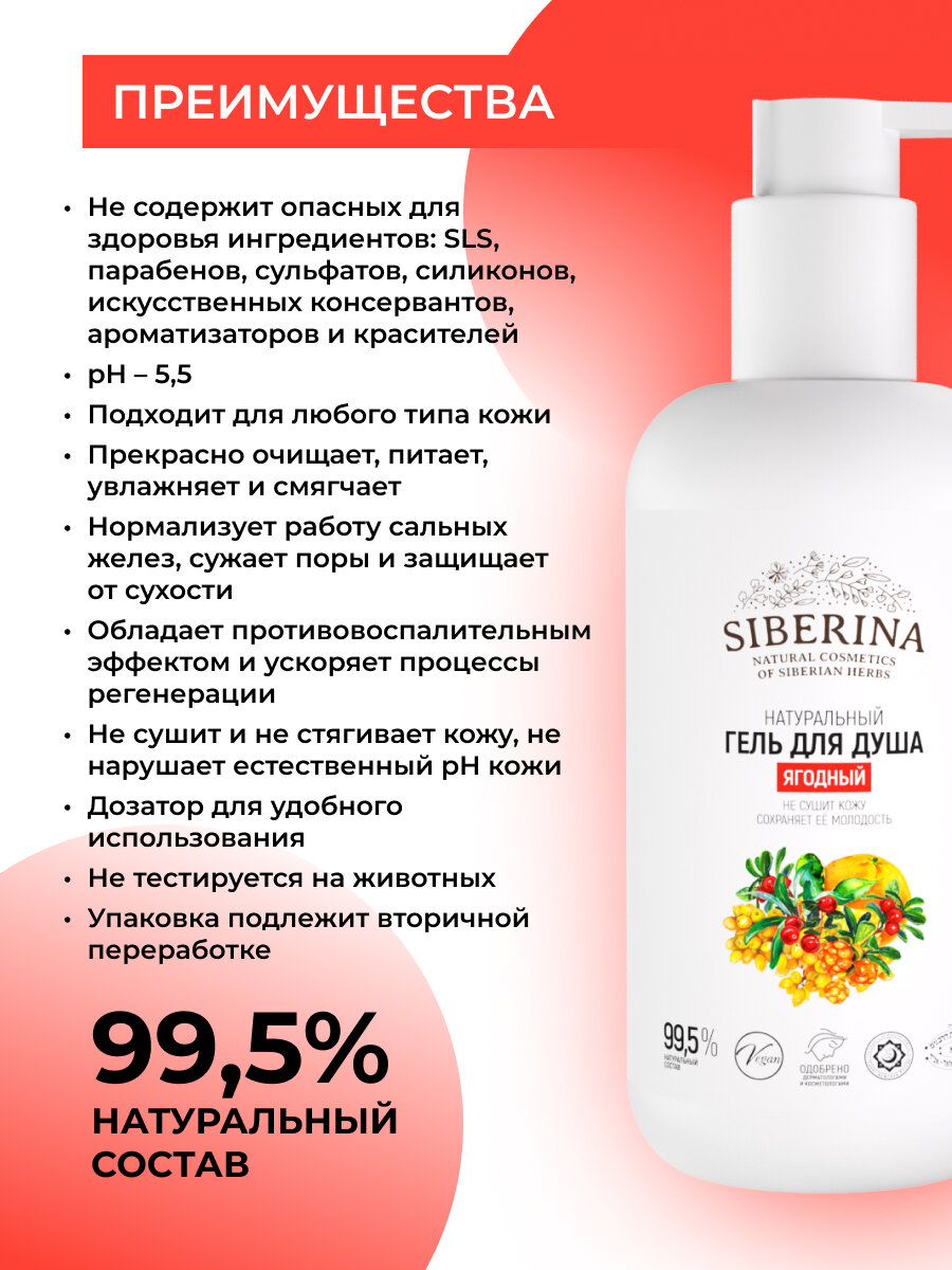 10 цен на Siberina Натуральный гель для душа "Ягодный" 200 мл