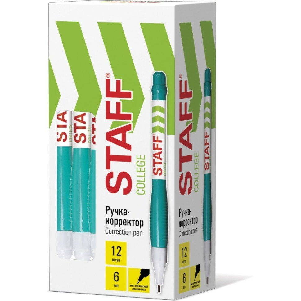 Ручка-корректор STAFF College, 6 мл, металлический наконечник, плоский корпус, 227569, - Комплект 15 шт.(компл.)