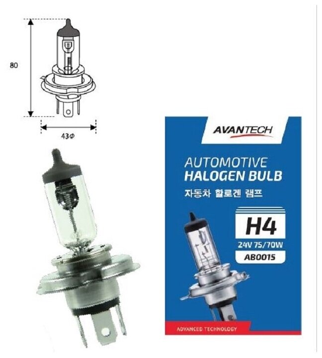 AVANTECH AB0015 Лампа галогеновая H4 (HB2) 24V 75/70W 1шт