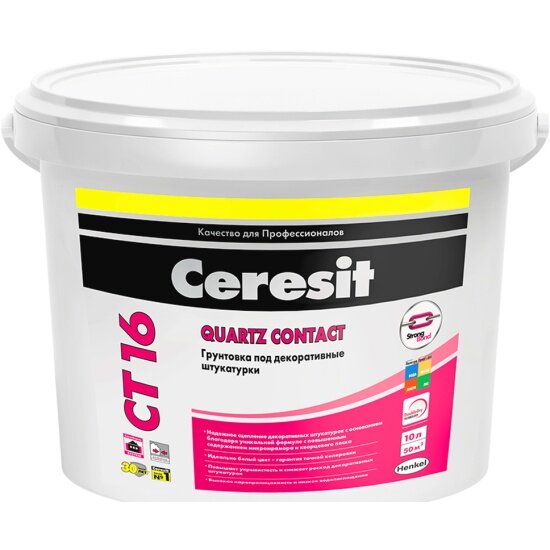 Грунтовка CERESIT CT 16, под декоративные штукатурки, 10 л информация: