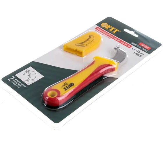 Нож электрика FIT 10604 1000 В с пяткой, нерж.сталь, 170 мм, лезвие 37 мм, прорезин.ручка информация: