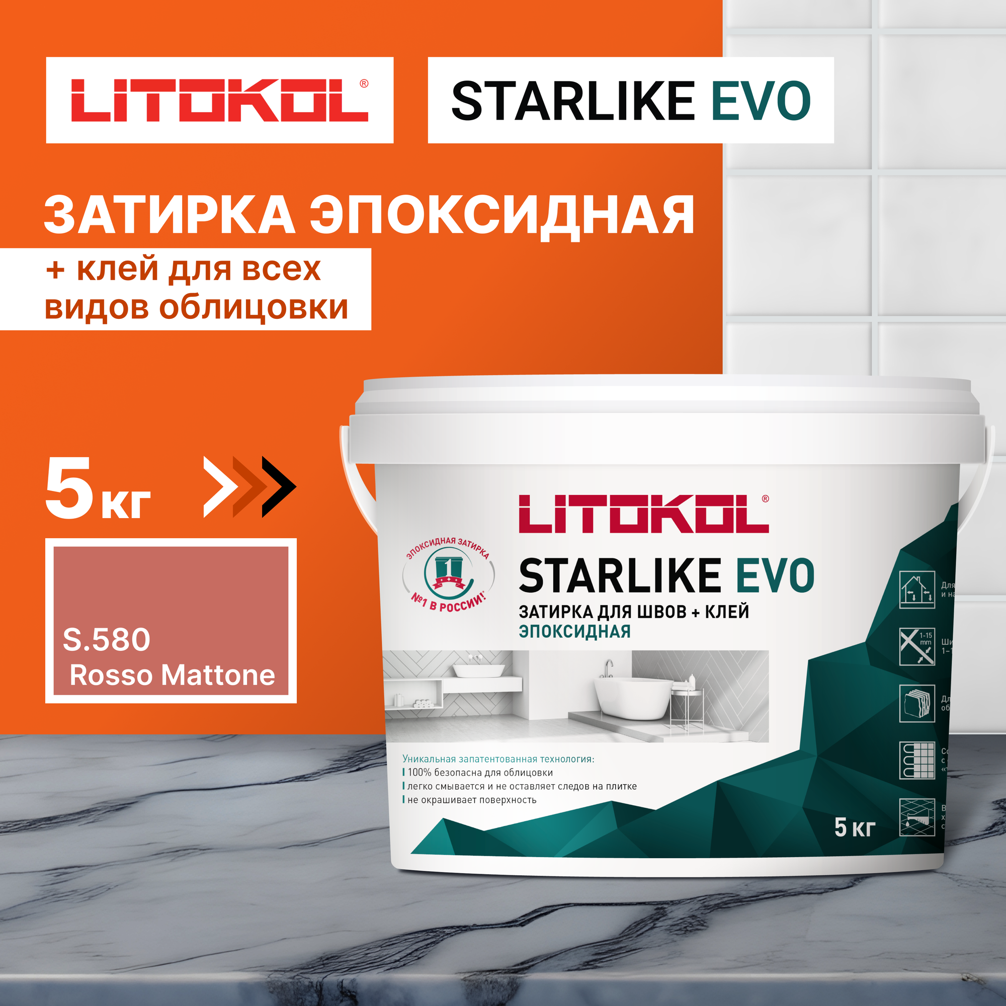 Затирка эпоксидная двухкомпонентная Litokol Starlike Evo S.580, Rosso Mattone, 5 кг информация: