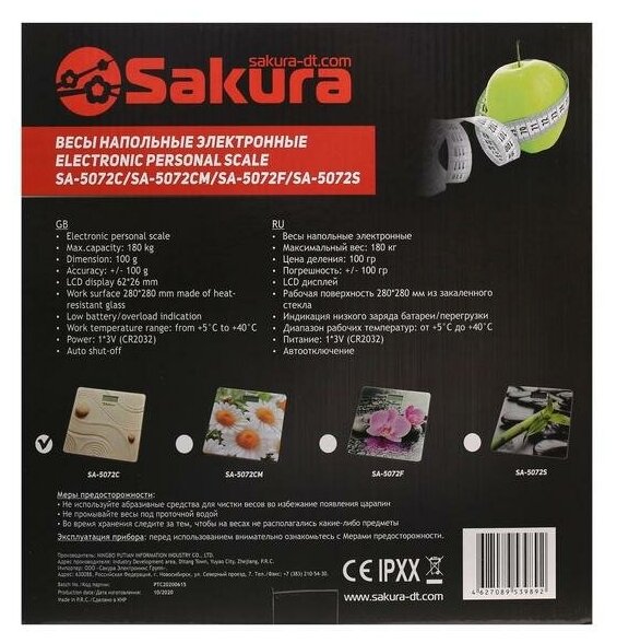 SAKURA Весы напольные Sakura SA-5000-11, электронные, до 130 кг, рисунок "цветы"
