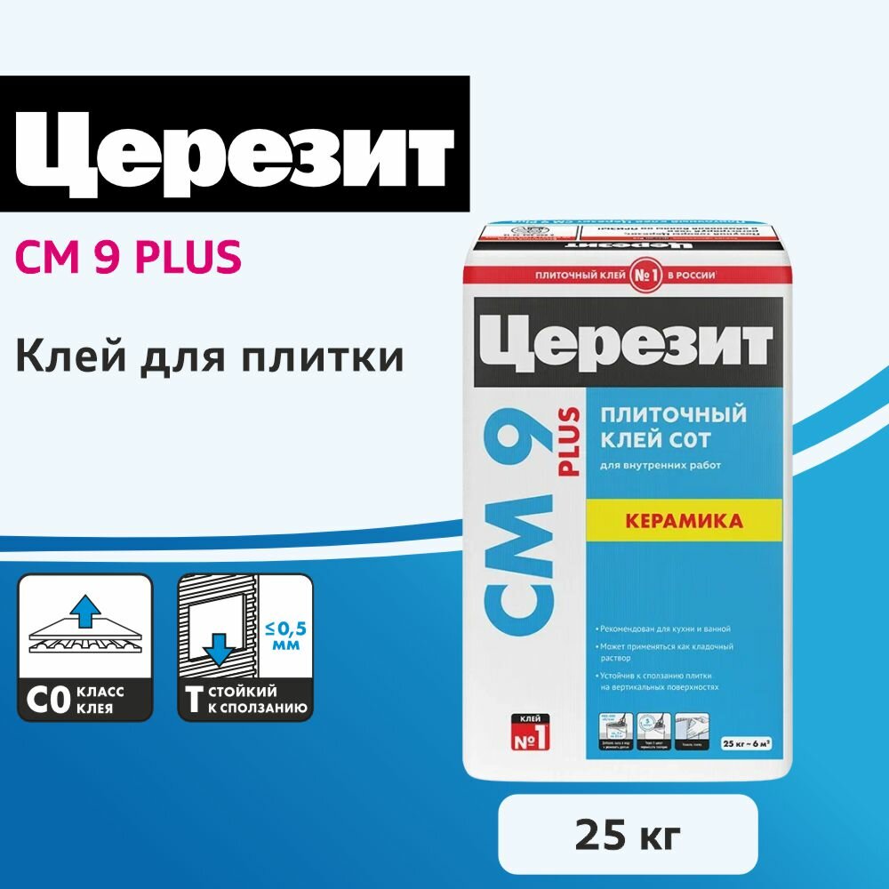 Церезит СМ-9 Плюс клей плиточный для внутренних работ (25кг) / CERESIT CM-9 Plus клей для плитки для внутренних работ (25кг) информация: