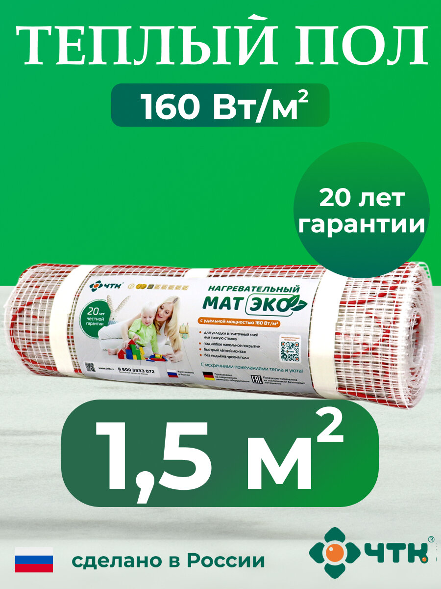 Теплый пол электрический ЧТК 1,5 м2 160 Вт/м2 нагревательный мат ЭКО информация: