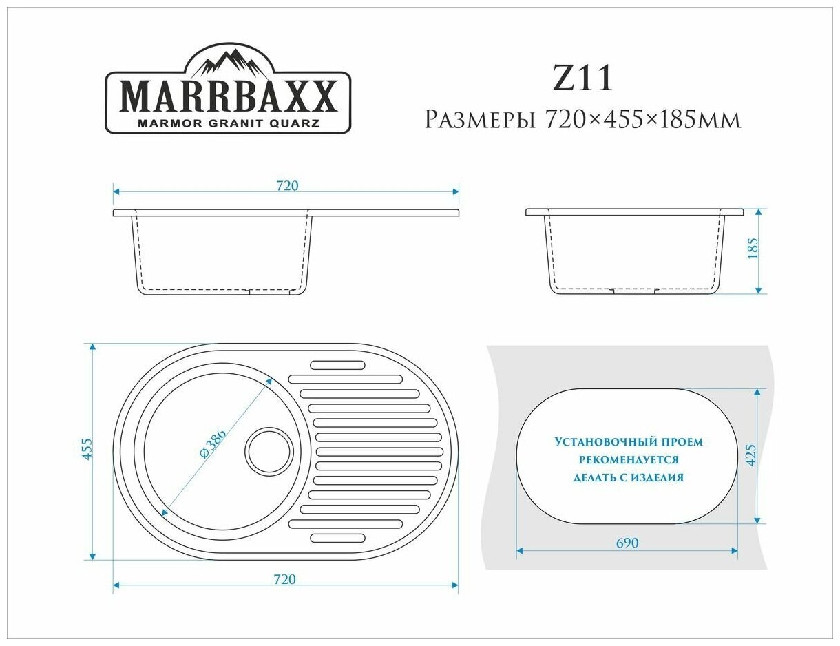 Врезная кухонная мойка Marrbaxx Касандра Z110 (гранит Marr)