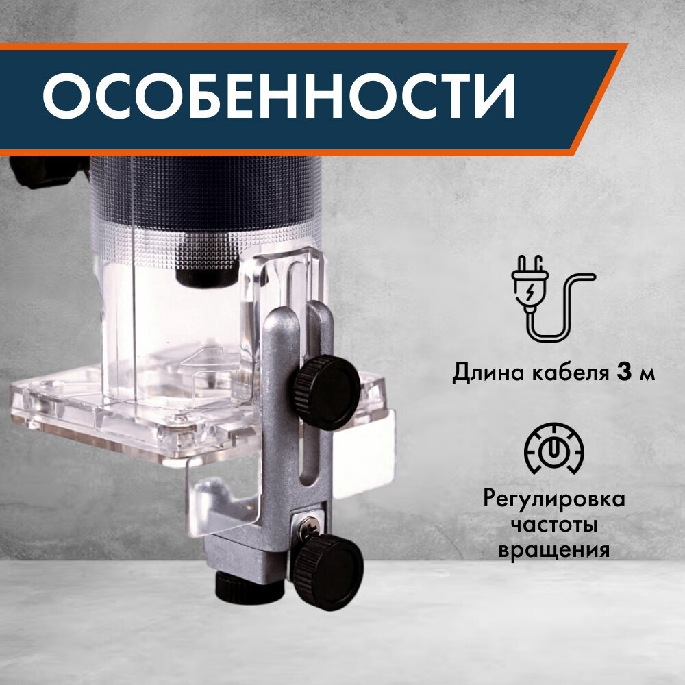| Комплектация | фрезер, параллельная направляющая, базовая пластина, направляющая шаблона, гаечный ключ |