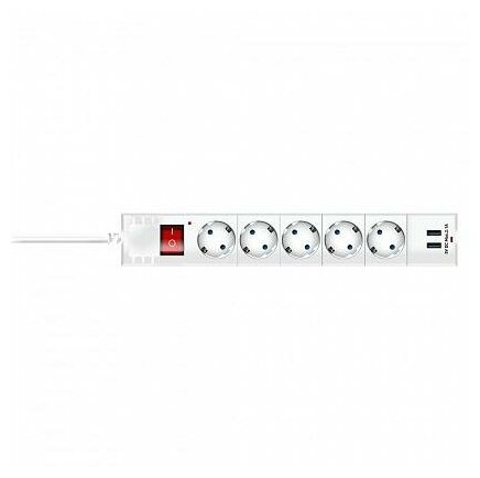 Сетевой фильтр düwi 5 гнезд с/з ПВС 3*0,75 5м, 10А/2,2кВт, с детскими шторками, 2USB, белый
