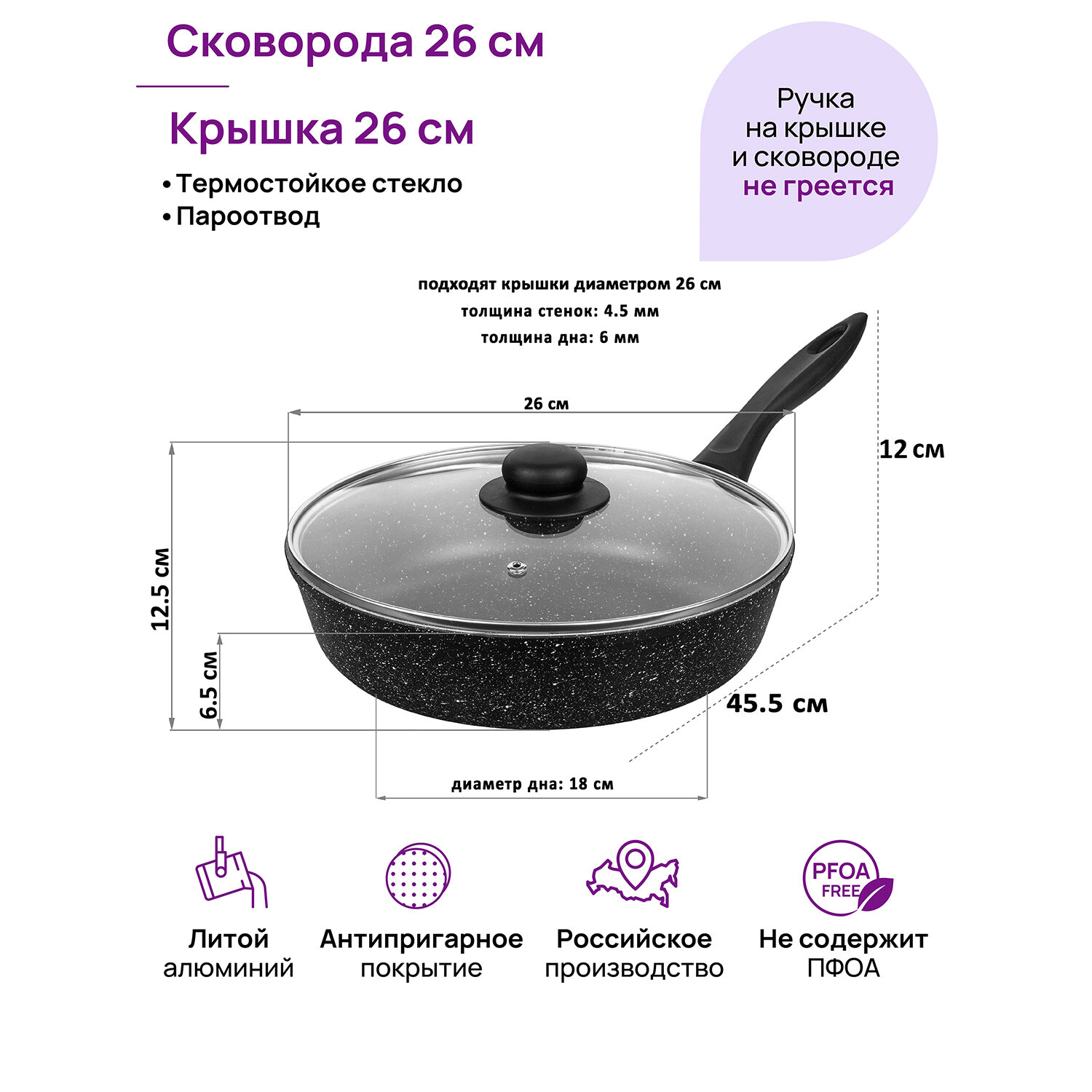 | Комплектация | сковорода, крышка |
