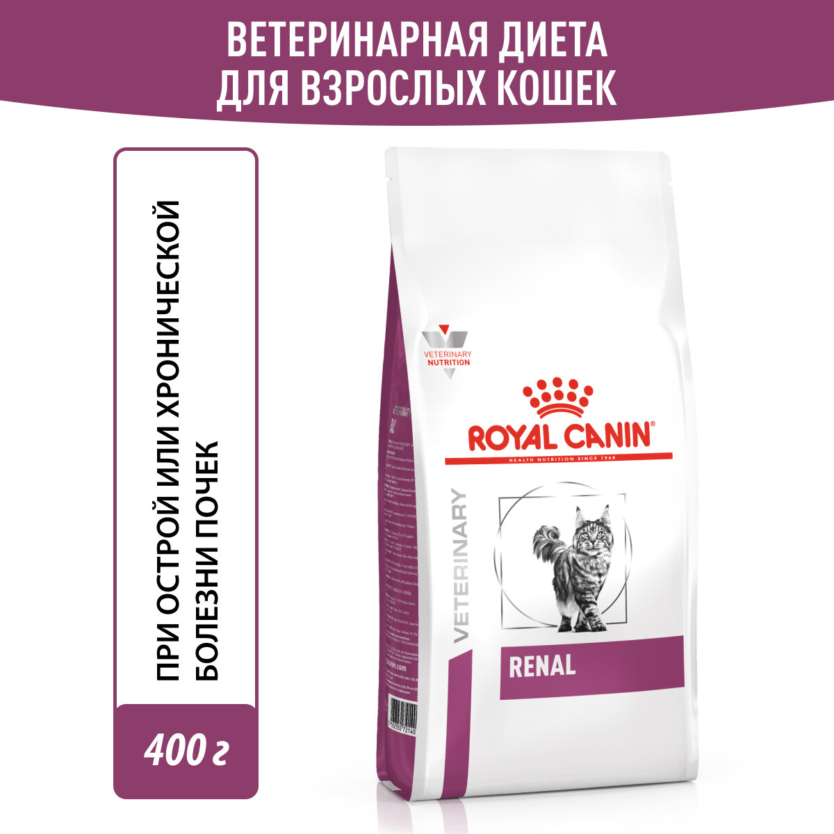 Royal Canin Renal Feline Корм сухой диетический для взрослых кошек для поддержания функции почек 0,4кг информация: