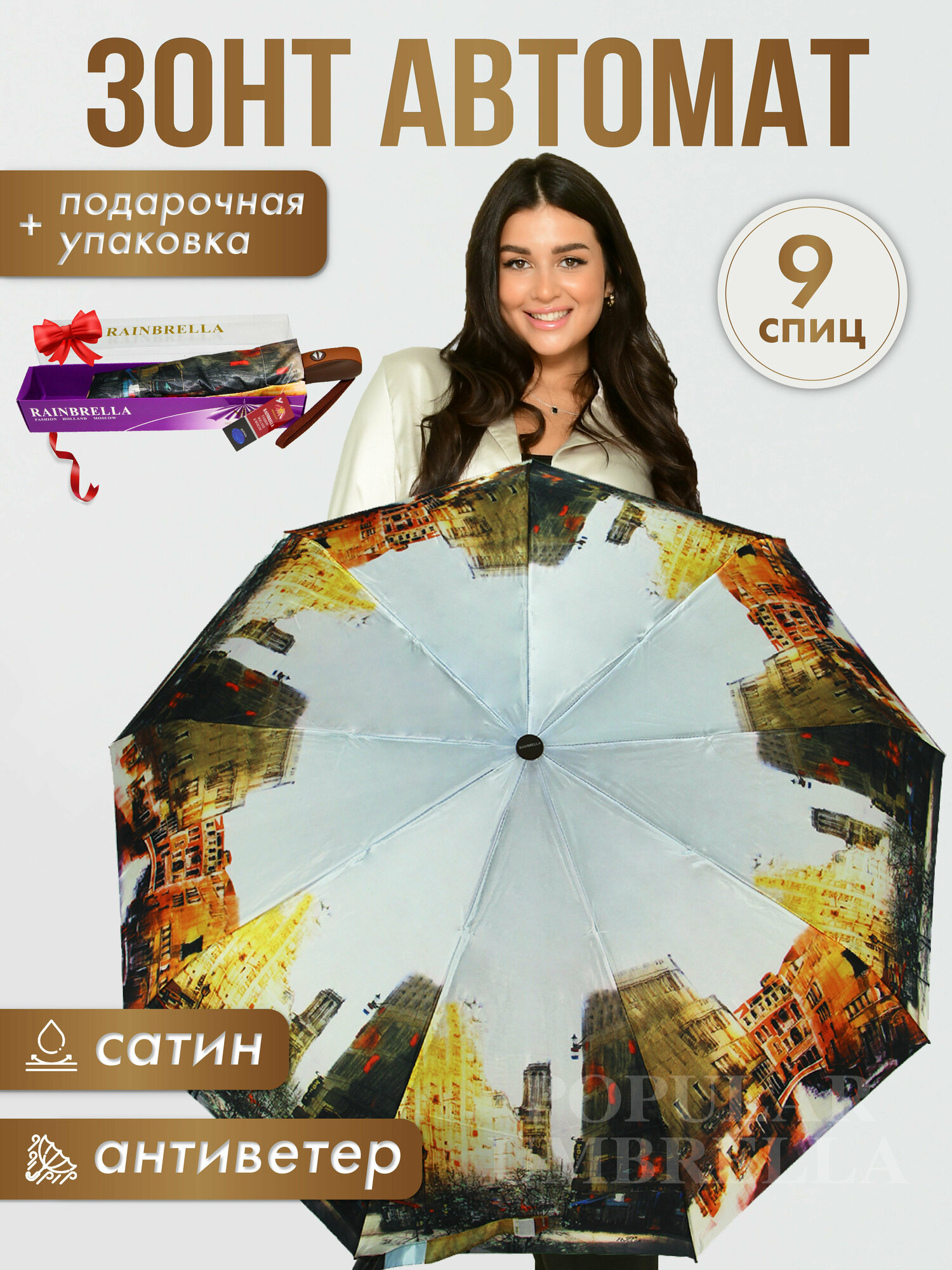 Зонт женский автомат, зонтик взрослый складной антиветер 16292S/бежевый,голубой