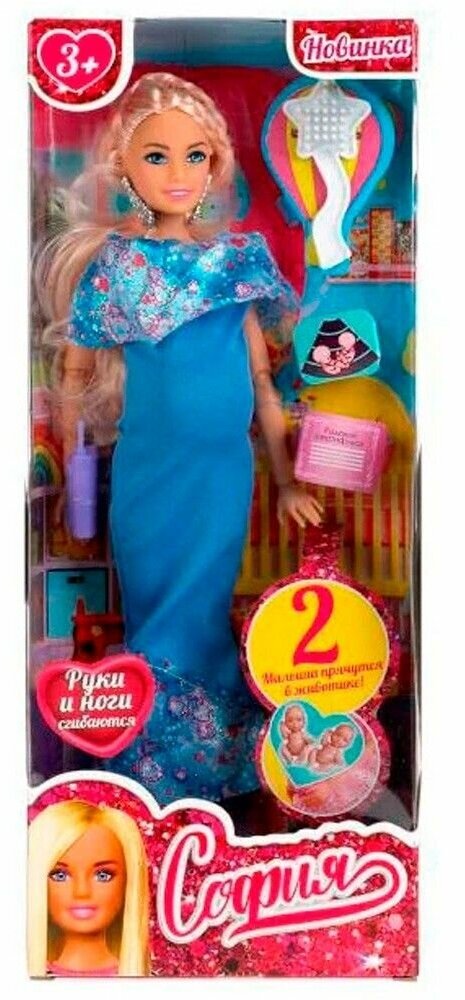 10 цен на Кукла София 29cv беременная 2-мя малышами, в вечернем платье с акс карапуз
