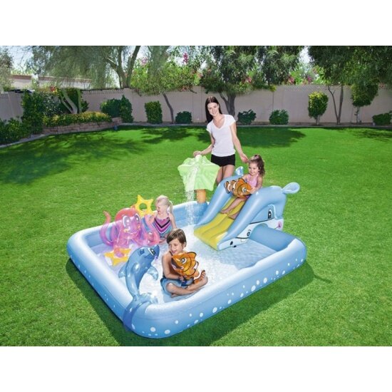 Игровой центр-бассейн 239х206х86 см, Фантастический аквариум, горка, дельфин, рыба-клоун, осьминог, Bestway, 53052