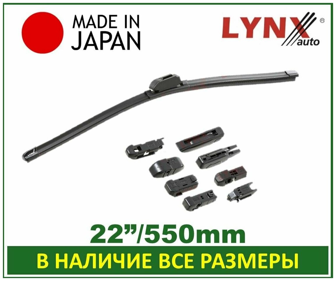 Щетка стеклоочистителя LynxAuto 550мм (22") бескаркасная, всесезонная, 8 переходников, 1 шт, арт. XF550 623 ₽