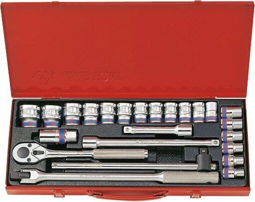 4526MR KING TONY Набор торцевых головок с принадлежностями 1/2", шестигранные, 10-32 мм, 24 предмета 4526MR информация: