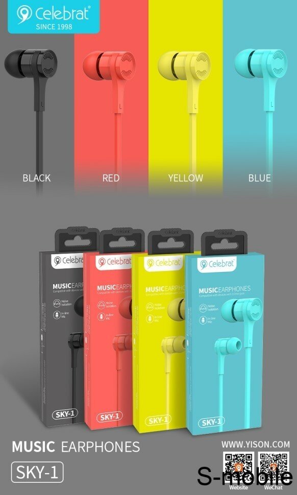 Наушники внутриканальные Celebrat SKY-1, микрофон, кнопка ответа, кабель 1.2м, цвет: черный