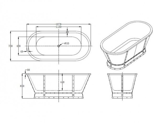 Акриловая ванна овальная BelBagno BB35, 1676x780x650 информация: