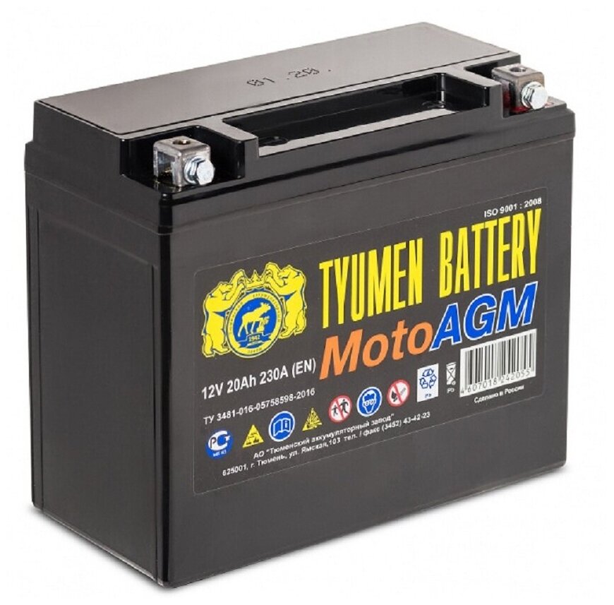 Аккумулятор TYUMEN BATTERY MOTO AGM 20A/h 230A 12V обр. /мотоцикл / снегоход / квадроцикл