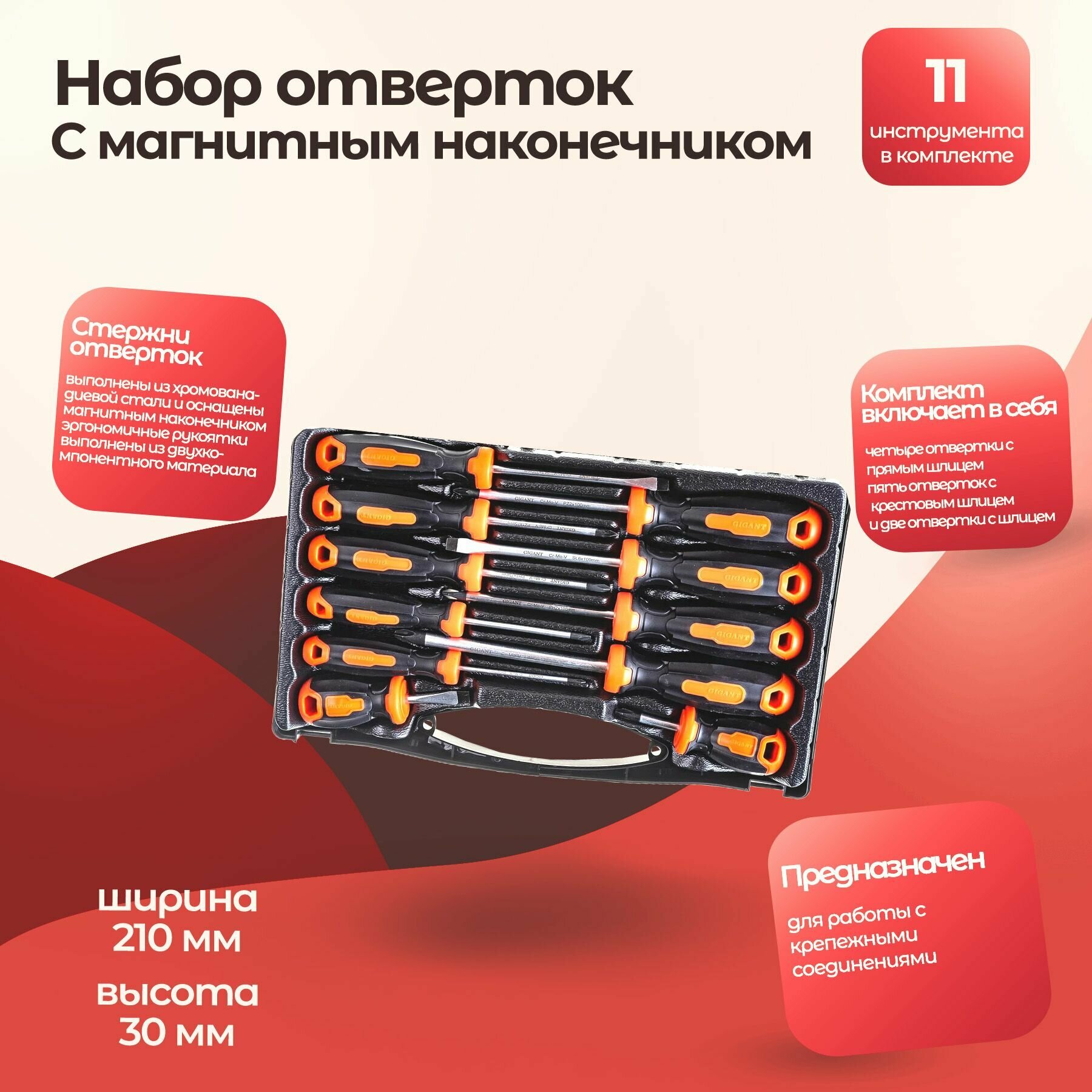 Набор отверток с магнитным наконечником Gigant 11 предметов GSS 11 информация: