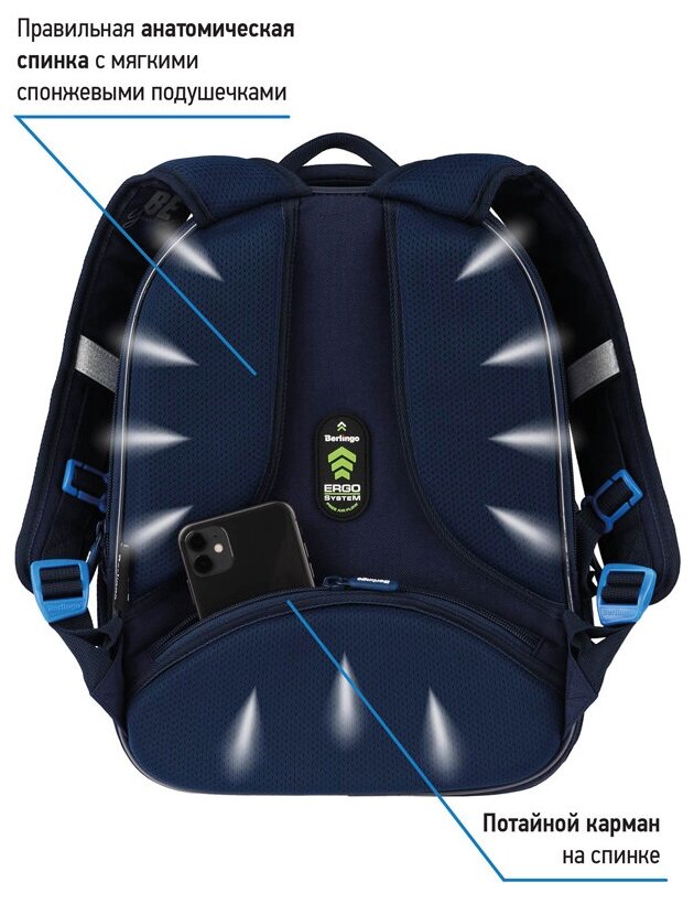 Ранец школьный формованный GRIZZLY с анатомической спинкой на ножках, для мальчика RAz-287-11/1