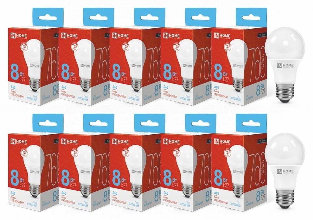 10 цен на Лампа светодиодная IN HOME LED-A60-VC 8Вт 230В Е27 6500К 10 шт.