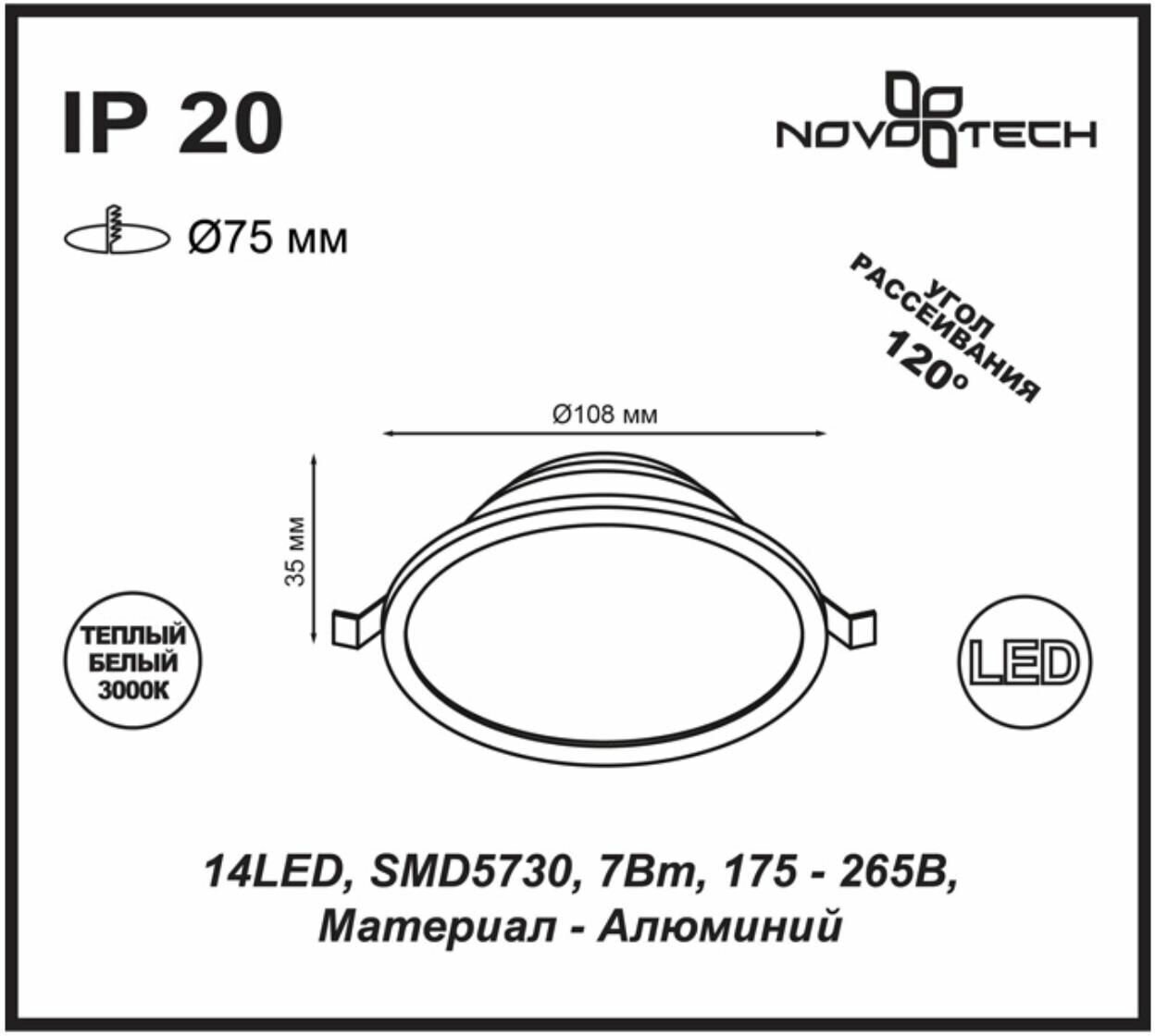 Novotech Встраиваемый светодиодный светильник Novotech Spot Luna 357572 790 ₽