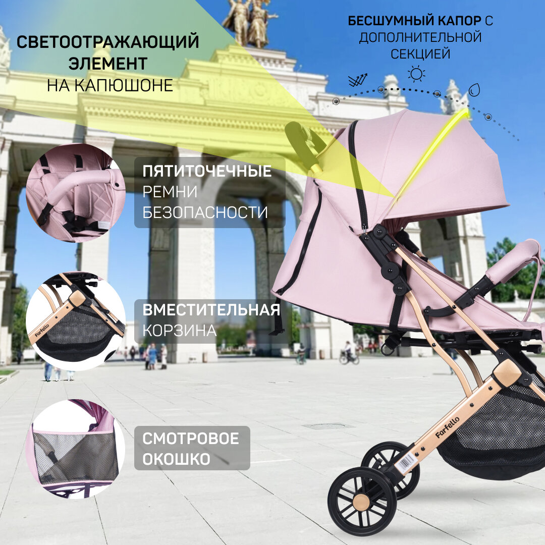 Коляска для детей Farfello Comfy Go / прогулочная коляска / от 7 месяцев / CG-88 / цвет розовый / рама золото