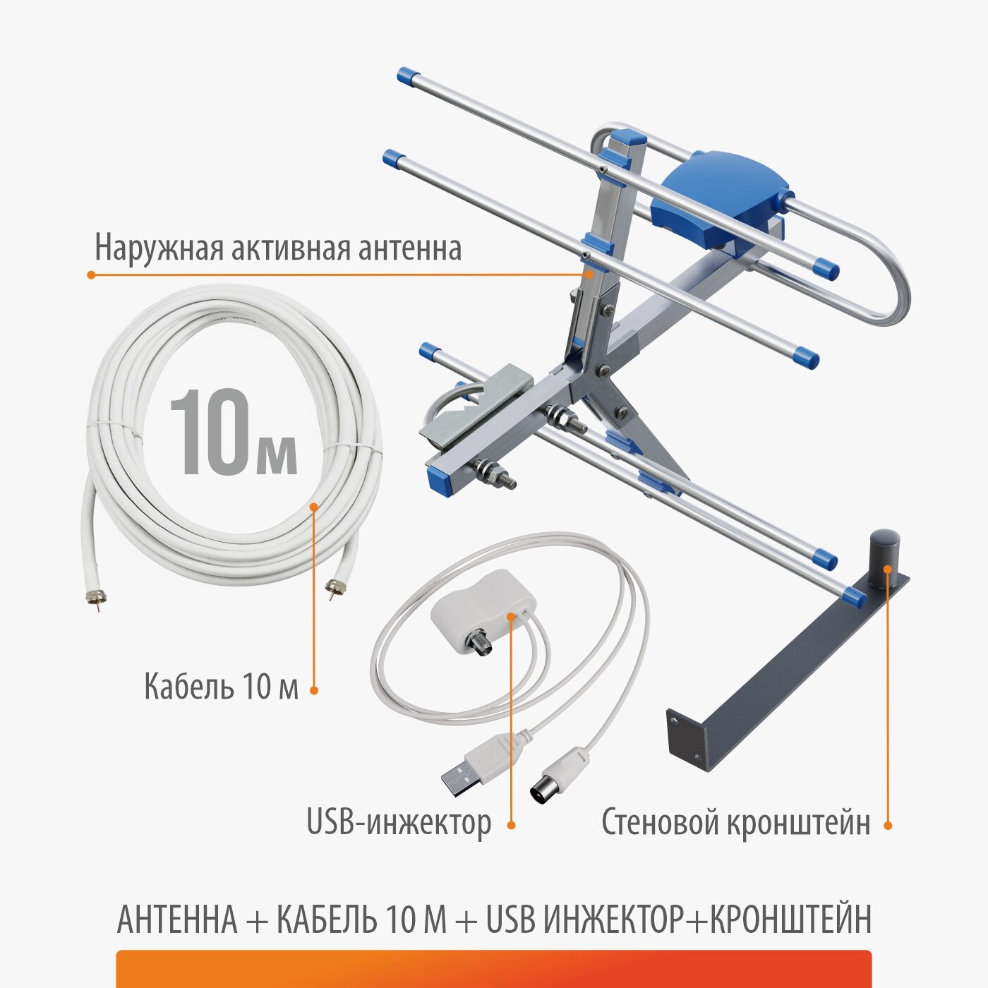 Уличная антенна РЭМО BAS-1180-USB активная с кабелем 10 м и кронштейном информация: