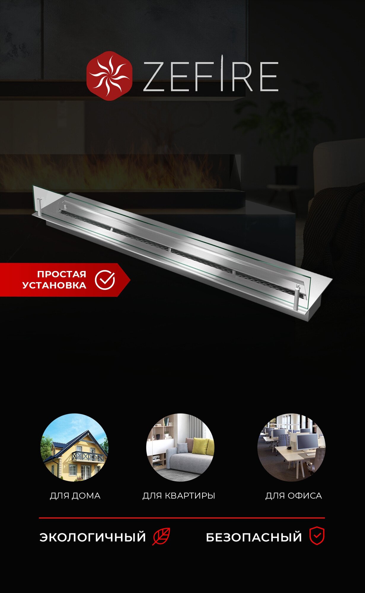 Биокамин топливный блок ZeFire 1000 со стеклом встроенная установка для дома и квартиры информация: