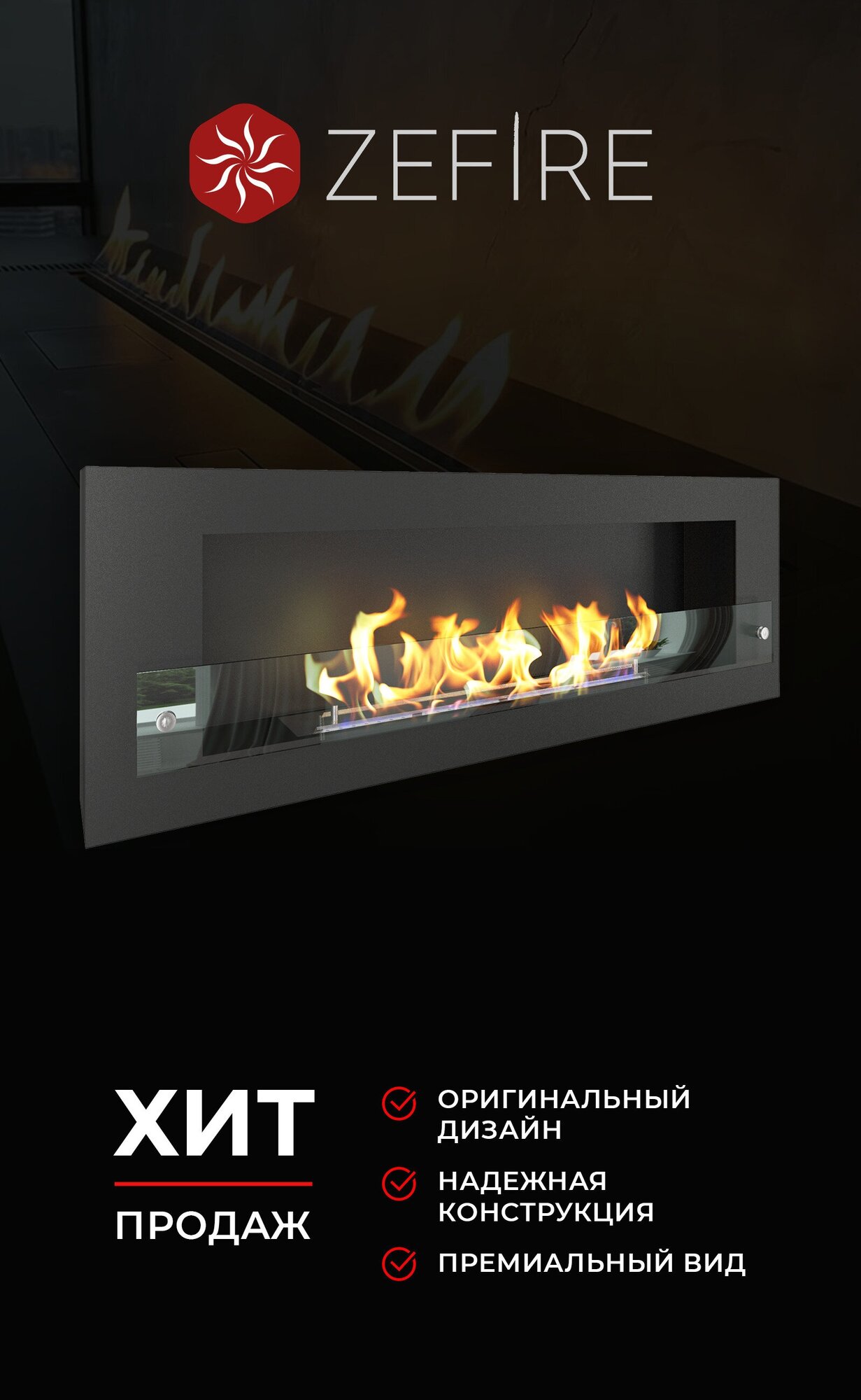Биокамин настенный ZeFire Orion 1200 со стеклом для дома и квартиры информация: