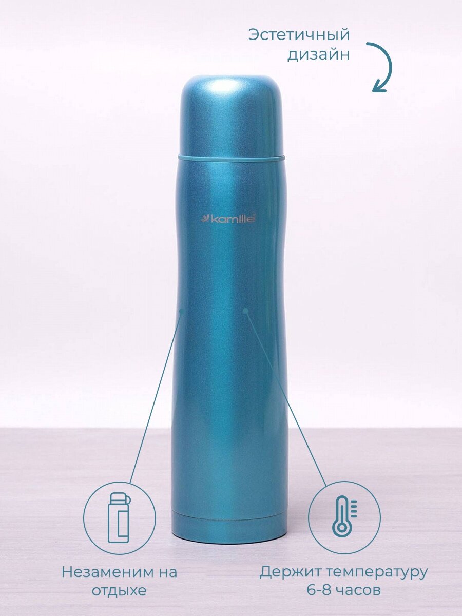 Термос 1000 мл. из нержавеющей стали Kamille KM-2000A (1 чашка) (голубой) информация: