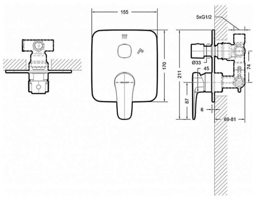 Bravat Встраиваемый смеситель 2-функц. (PB8173218CP-2-ENG) информация: