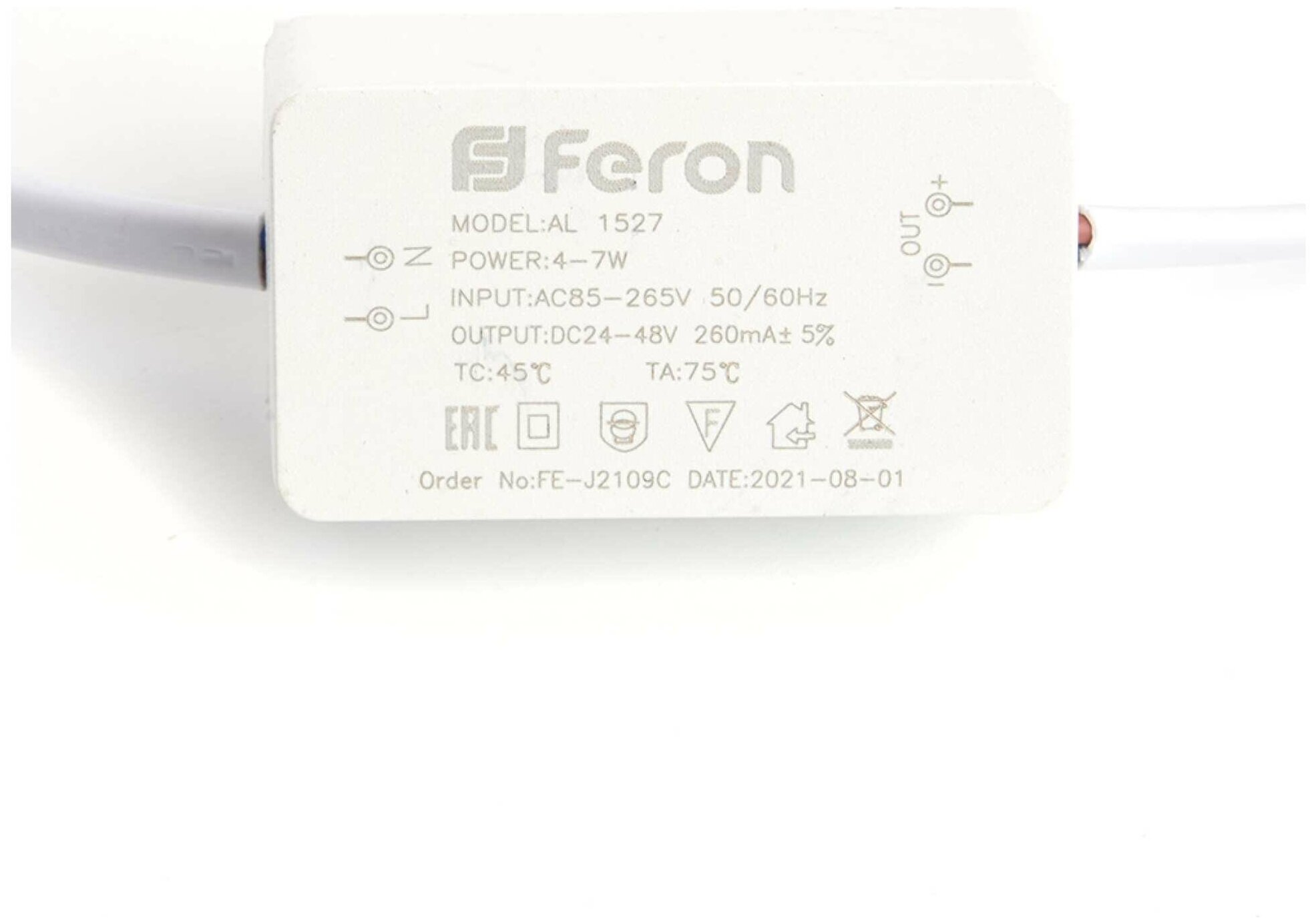 Светодиодный светильник AL1527 встраиваемый 7W 4500K белый, FERON 41195 (1 шт.)