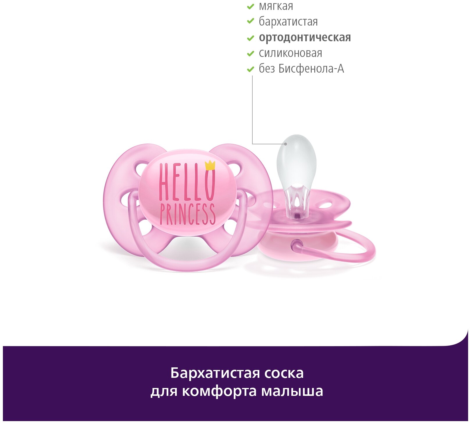 Детский товар Philips Пустышка ultra soft, Hello Princess/Лебедь, 6-18 мес., 2 шт, для девочек