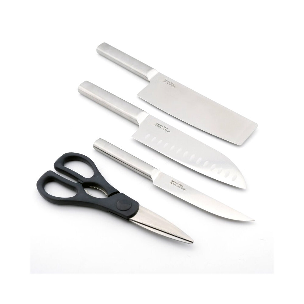 Набор стальных ножей (3 ножа ножницы подставка) Huo Hou Stainless Steel Kitchen Knife Set (HU0095), серебристый