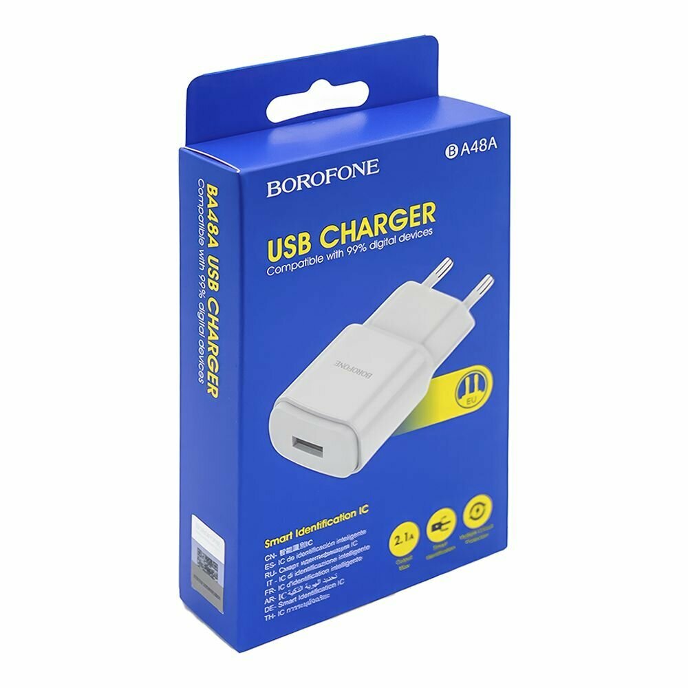 Сетевое зарядное устройство (адаптер) Borofone BA48A, USB Type-A, 2.1А, EU, белый