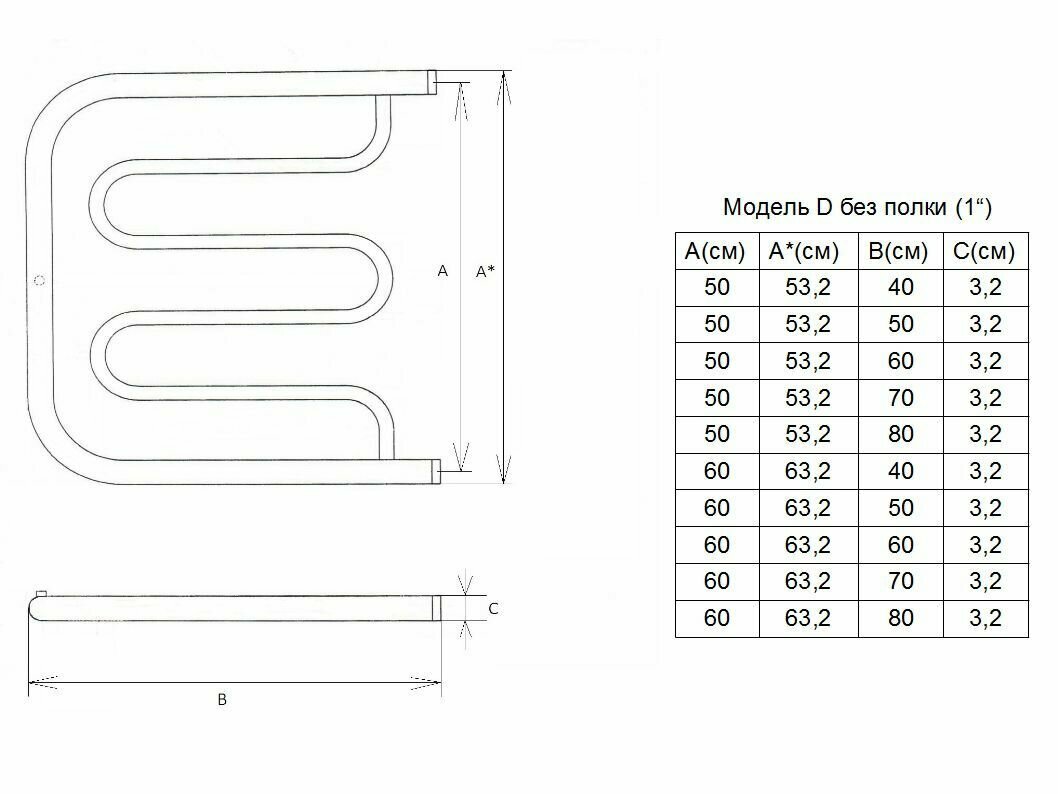 Полотенцесушитель Двин D 50/50 без полки водяной 4627085890232 информация: