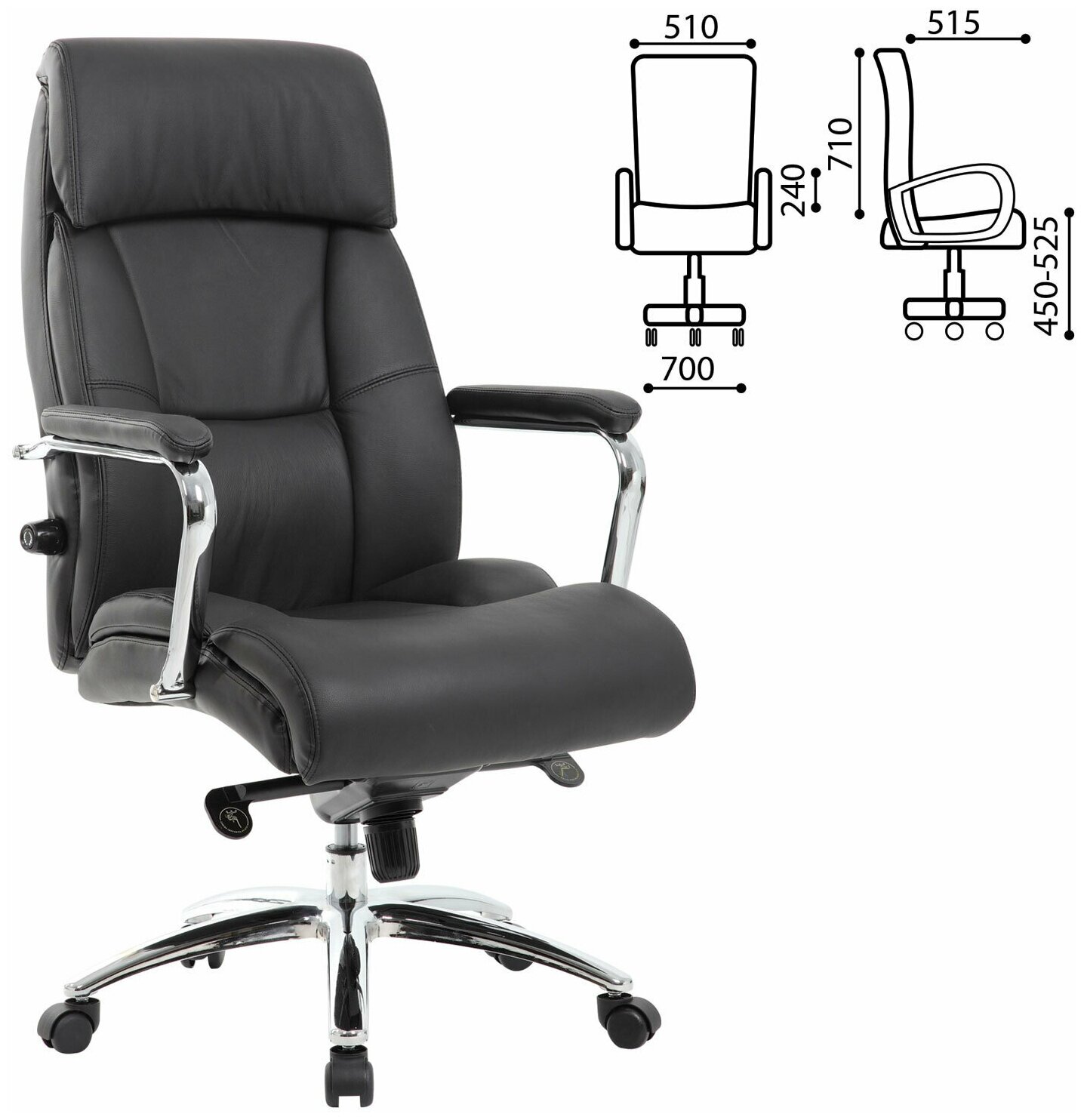Кресло Brabix Premium, "Phaeton ex-502", натуральная кожа, хром, черное (530882) информация: