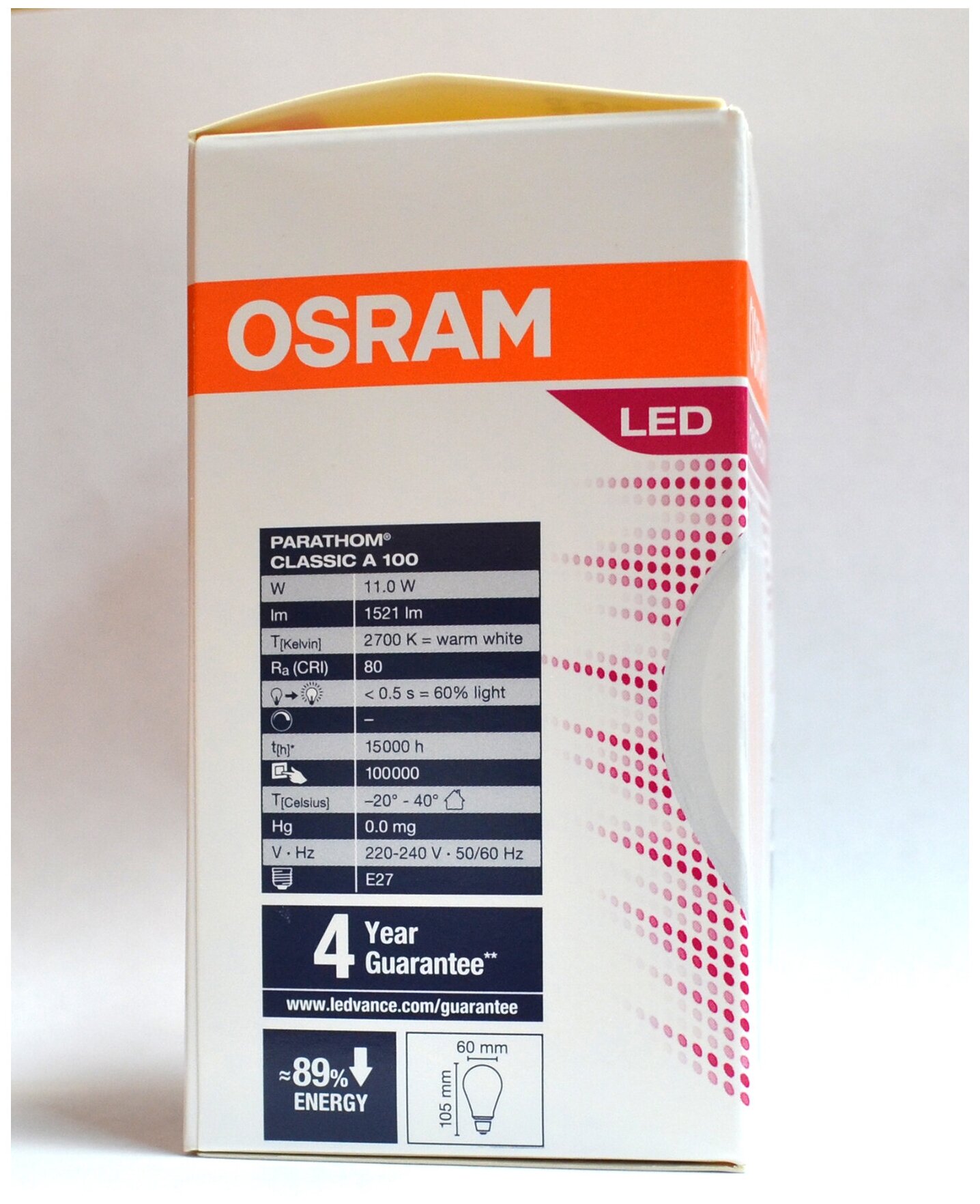 | Эквивалент лампы накаливания | 100 Вт |