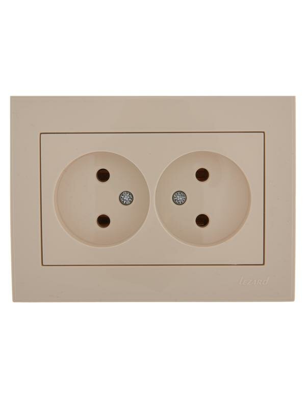 Розетка двойная Lezard Rain, встраиваемая, в сборе, б/з, керамика, кремовый