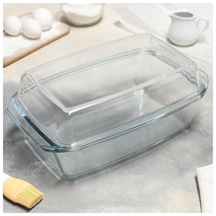 Кастрюля из жаропрочного стекла для запекания Доляна "Утятница", 2,9 л, 24,5х20,5х13,5 см, с крышкой