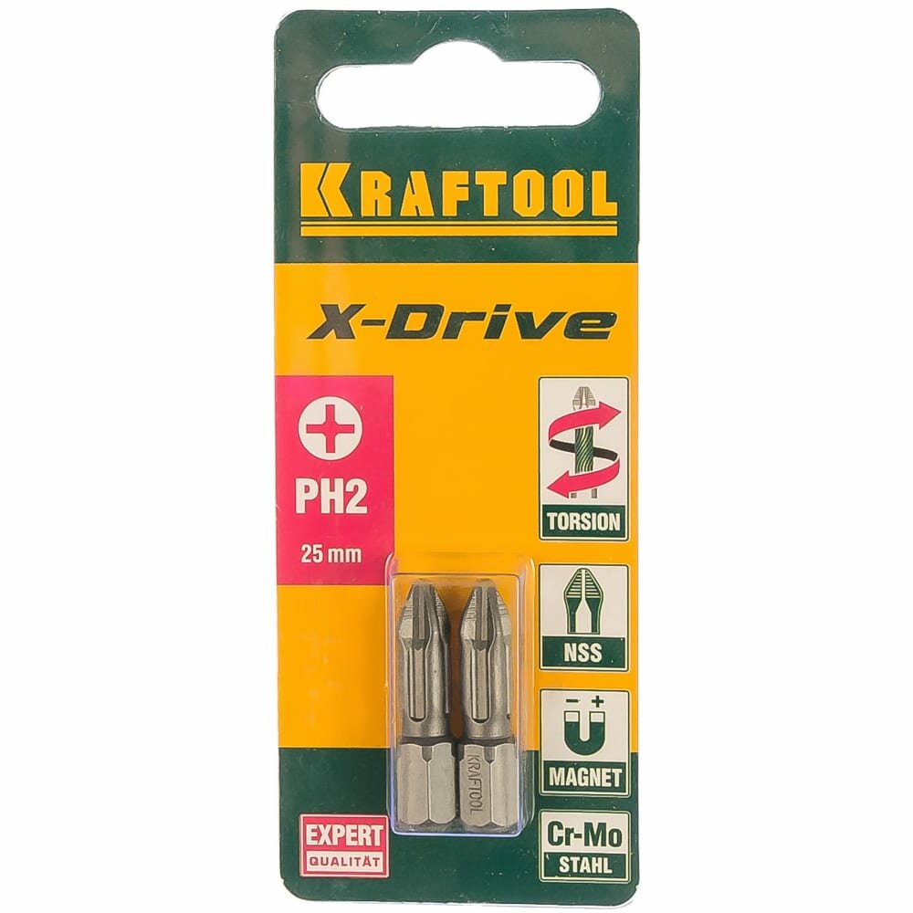 Биты кованые профессиональные X-DRIVE KRAFTOOL PH2, 2 шт., 25 мм