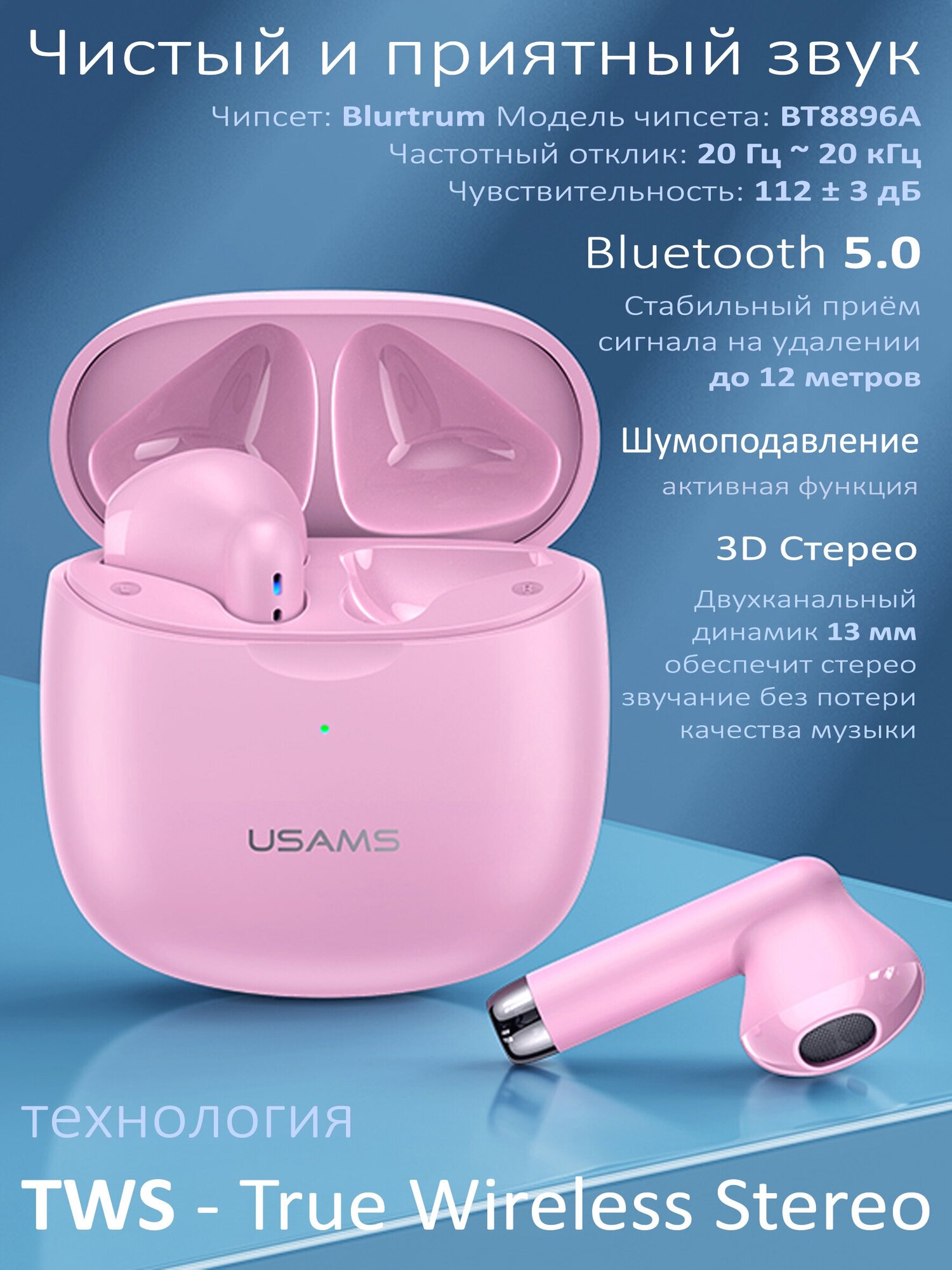 Беспроводные наушники USAMS TWS Earbuds IA04 Series Ping информация: