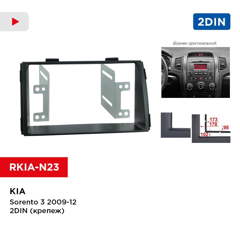 Рамка KIA Sorento-3 09-12 2din (крепеж) (Incar RKIA-N23) информация: