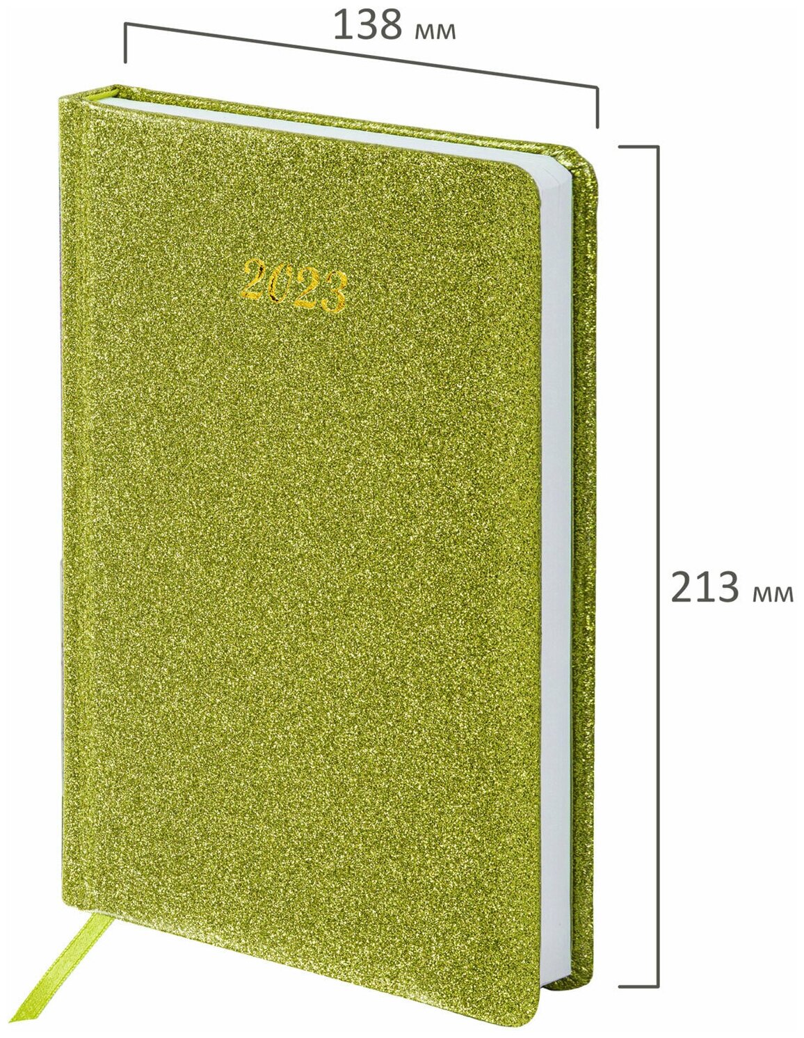 Ежедневник-планер (планинг) / записная книжка / блокнот датированный на 2023 год формата А5 (138x213 мм) Brauberg Sparkle, под кожу, блестки, зеленый